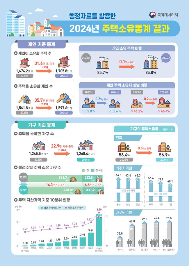 2024년 주택소유통계…개인·가구 모두 증가, 무주택 비중 43.1%